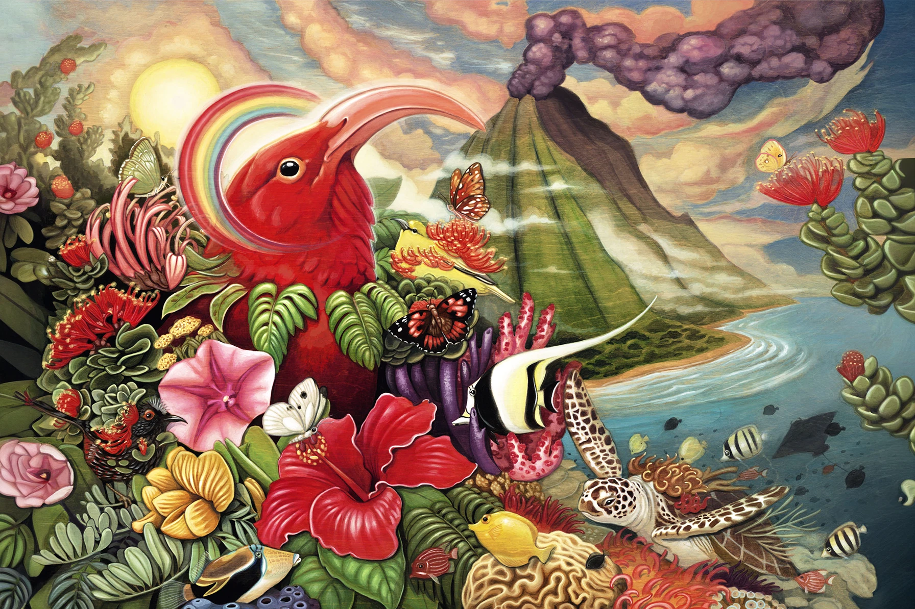 Shane Koehler, an imaginative wildlife artist based in Portland, Oregon, specializes in watercolor paintings on hand-cut wood panels. A self-trained artist, his childhood in Michigan’s wetlands ignited a passion for ecology that later led him to work as a field guide in U.S. national parks. Koehler's art studio is an enclosed botanical garden, where nature is both his subject and daily influence. Using wood as his canvas allows the natural wood grain to emerge and strengthen the organic connection between material and subject.
